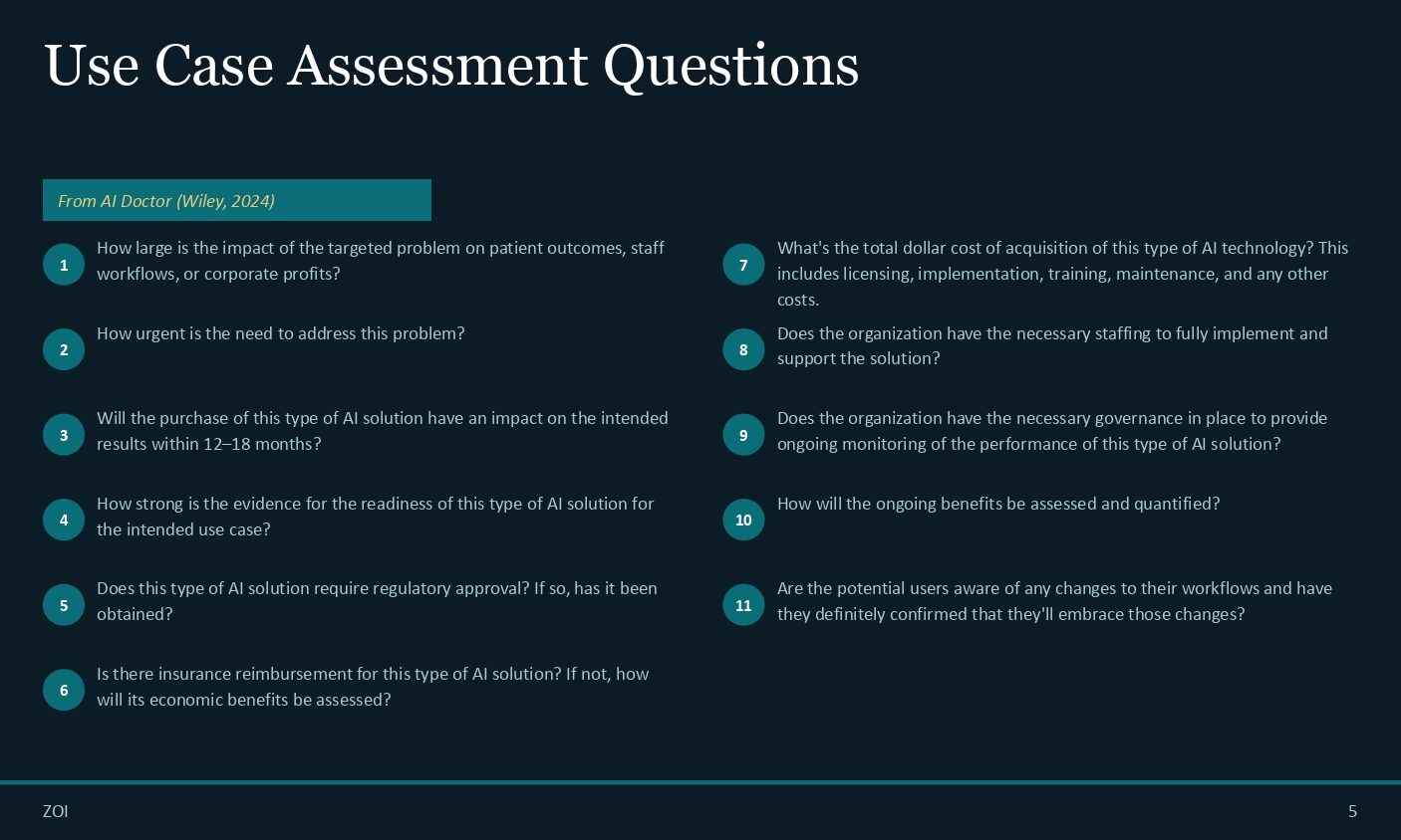 World’s top capital allocators and operators in healthcare attend a half-day workshop series to learn about Zoi’s proprietary frameworks that improve the selection and growth of the best health AI use cases and companies