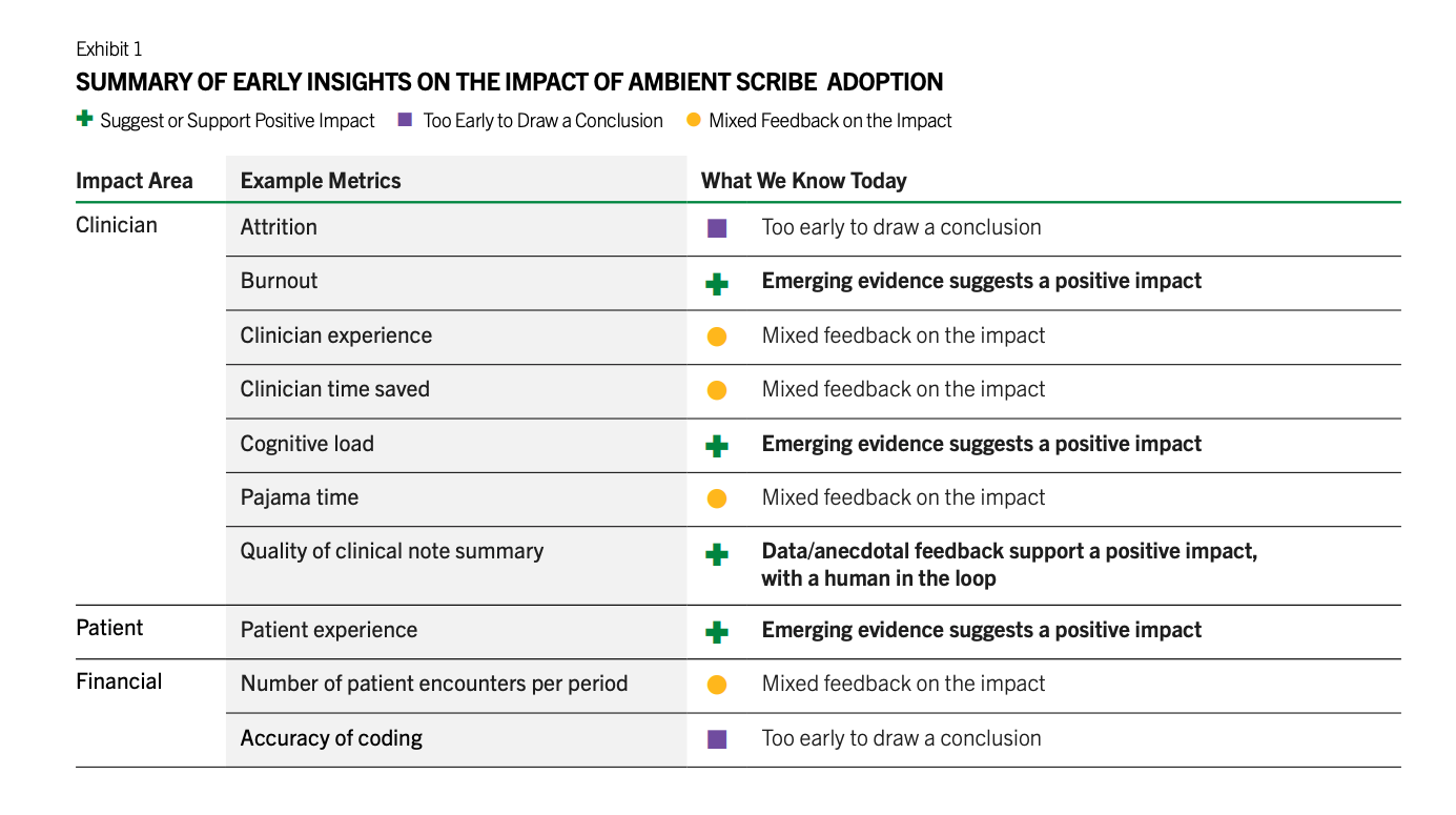 There are a number of other barriers such as the medical legal concerns by the providers, lack of the training of the staff in using them, lack of IT resources that can implement and monitor these tools, unclear regulatory framework, cost, and more. However, in the last 18 months, we have seen brisk adoption of some use cases such as ambient documentation, co-pilot function within the EHRs, and to a lesser extent coding. All of these are workflow and administrative use cases. There is a reason for this. These are lower risk use cases that don’t involve clinical decisions and none is fully autonomous. Doctors review the notes generated by ambient AI documentation tools and review any codes that are automatically created, and chart summaries are intended to save them time from reading a thick patient record but often that information is validated by the patient. I’ve also heard that the chart summaries have too many errors such that the doctors have to go back and check the information again, which is counter-productive. There’s also early evidence that there’s ROI for these tools. Peterson’s Health Technology Institute published a study that estimated lower burnout and cognitive load for physicians from the use of ambient AI documentation but the financial ROI to the health systems is not clear yet.